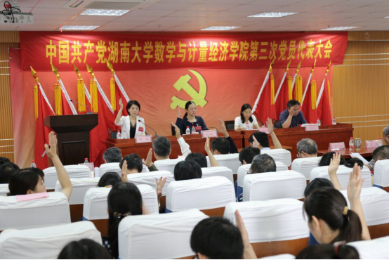 数学与计量经济学院第二届委员会作题为《不忘育人初心,牢记时代使命,团结协作,攻坚克难,努力建设国内一流数学学科》的工作报告。在报告中,程卓蕾同志对过去七年工作进行了回顾和总结,提出了未来四年发展思路和工作目标,呼吁全体党员干部和师生员工继续牢记使命,凝聚新时代数学人的精、气、神、团结协作,为创建国内一流的数学学科不断努力奋斗,为学校争创“双一流”做出新的贡献。大会还以书面形式审议通过了《党费收缴、管理和使用情况的报告》、《大会选举办法》。在主持人宣读了两个委员会候选人名单之后,61位党代表正式进行投票选举。