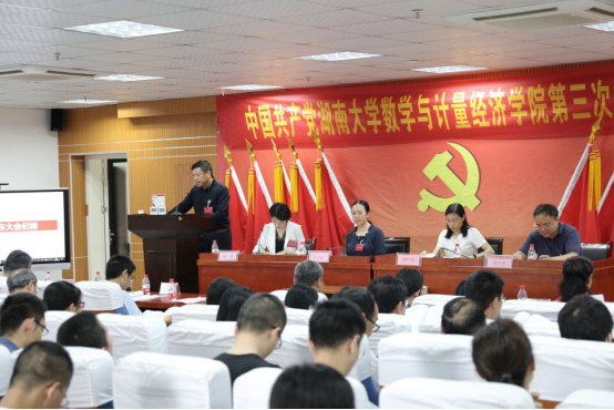 数学与计量经济学院第三次代表大会在数学院207报告厅隆重召开。大会主题是:高举中国特色社会主义伟大旗帜,以习近平新时代中国特色社会主义思想为指导,深入贯彻党的十九大和学校第九次党代会精神,带领学院共产党员和全体师生员工,不忘育人初心,牢记时代使命,充分把握“双一流”建设的大好机遇,团结协作,攻坚克难,为建设国内一流的数学学科而努力奋斗。大会由数学与计量经济学院党委副书记熊雅同志主持,中共色情文学
