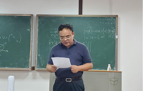 大会第二项,副院长黄勇教授致辞。黄老师为大家明确了了解湖大数学院的三个关键因素:学习环境、学术水平、学术氛围,同时这也是学院最具吸引力的地方。对于学习环境,黄老师建议同学们爬爬岳麓山,感受到壮丽风景的同时,也能得到精神上的升华;对于学术水平,学院对学术的要求很高,学院具备数学一级学科博士点、博士后科研流动站,同时作为湖南省一级重点学科,今后的发展会更加可观;对于学术氛围,黄老师建议同学们参观学院二楼的研究生自习室、讨论班等,并多与学长学姐们沟通探讨,就会感受到学院对培养人才的重视和学生们自主、积极的学习氛围。黄老师对同学们提出期望:“希望各位能够通过在湖大数学院学习的机会,提高信心,今后可以让湖大因你们的优秀而骄傲!”