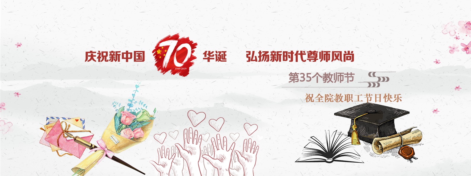 今年教师节的主题是“庆祝新中国七十华诞,弘扬新时代尊师风尚”。全体师生员工要坚持以党的十九大和全国教育大会精神为指导,深入学习贯彻习近平总书记系列重要讲话精神,坚持立德树人根本任务,为把我国建设成为高等教育强国做出新的更大贡献,为实现中华民族伟大复兴不懈奋斗!