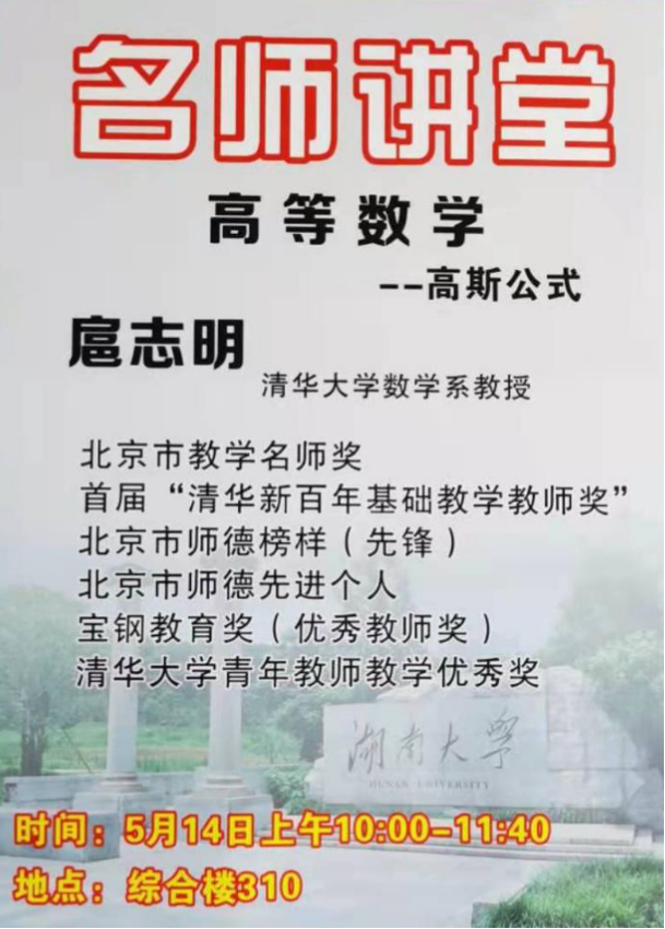 “十四五”发展规划,加强《大学数学》系列课程建设,全面提升公共数学教学质量,学院统筹谋划,举办《名师讲堂》系列活动,邀请国内一线教学名师来院讲授公开课,并与本院教师进行教学交流研讨。