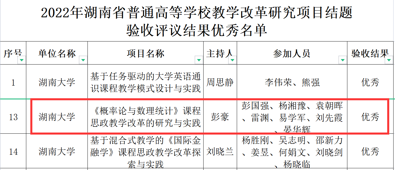 下一篇:彭豪老师牵头的《概率论与数理统计》课程思政教学改革的研究与实践项目获批2020年度湖南省普通高等学校课程思政建设研究项目